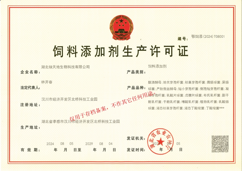 湖北綠天地生物科技有限公司 (簡稱綠天地公司)投資7000萬元,擁有25000平方米的廠房和國內(nèi)先進(jìn)的設(shè)備360臺(tái)套,建有微生物發(fā)酵、發(fā)酵冷凍干燥、低溫造粒等8個(gè)車間,發(fā)酵罐總?cè)萘?50立方米,專業(yè)的飼用級益生菌發(fā)酵生產(chǎn)基地。 公司已通過IS09001:2015質(zhì)量管理體系認(rèn)證。 綠天地公司得到了華中農(nóng)業(yè)大學(xué)、中國農(nóng)...